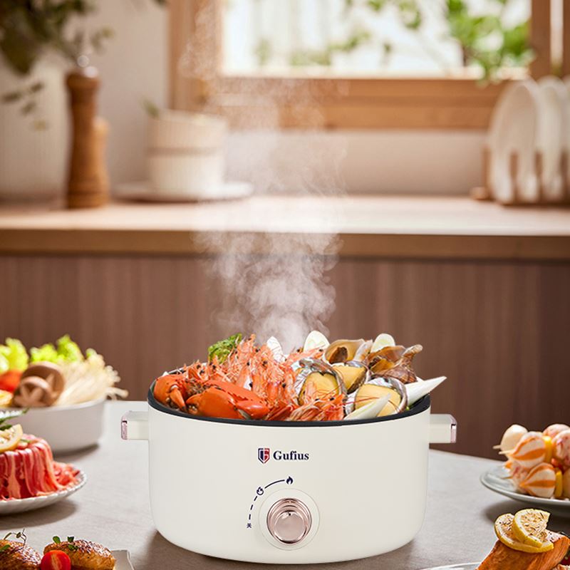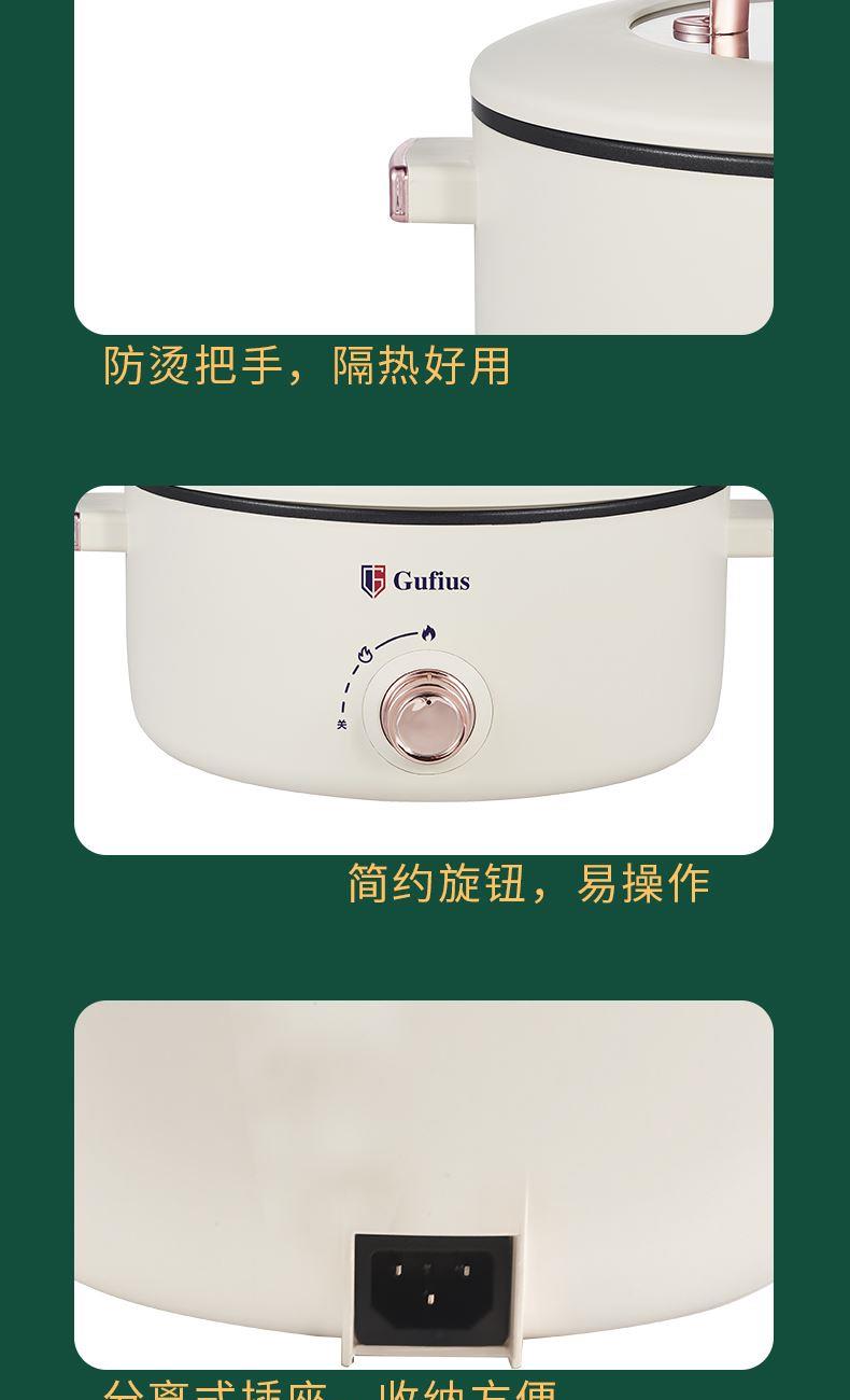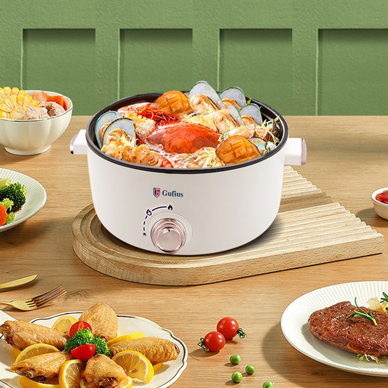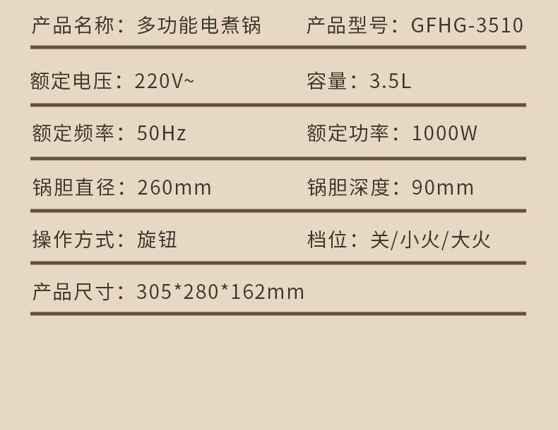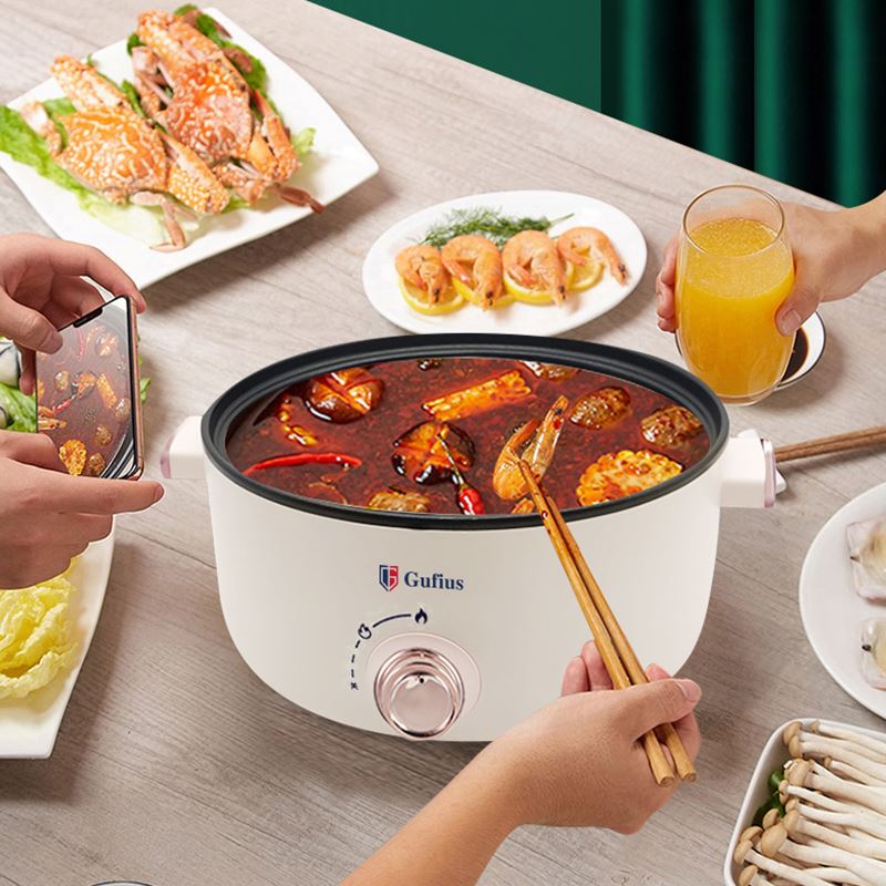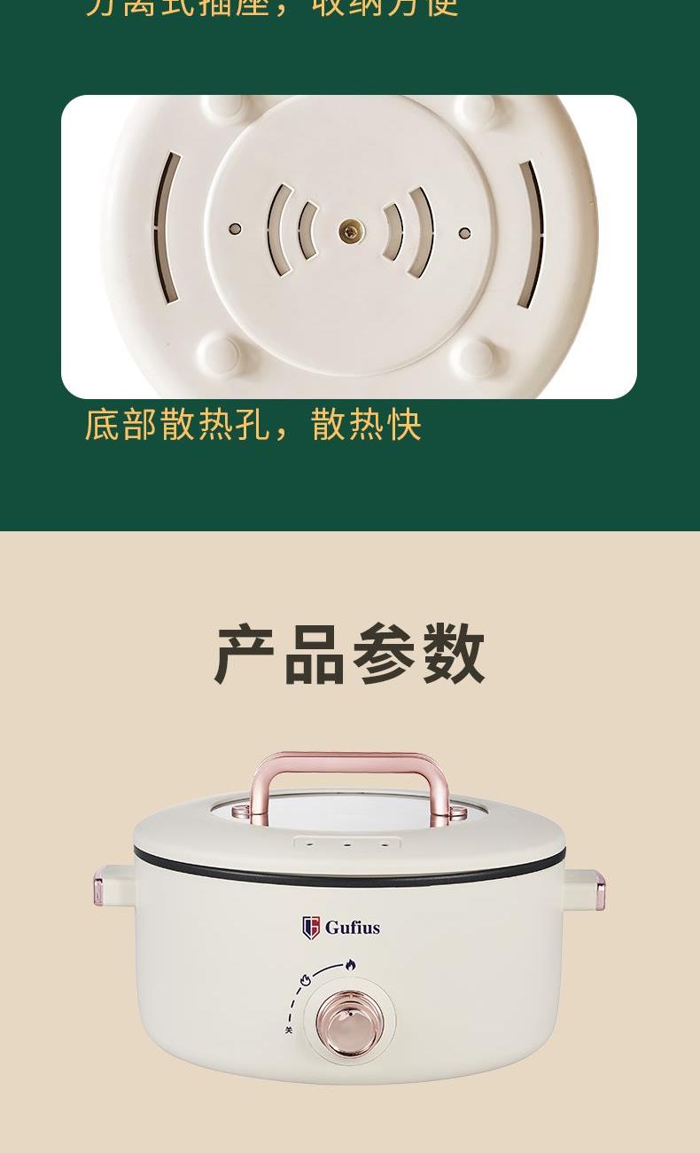 1、多功能烹饪于一锅,涮、焖、煮、炖、煎、炒、烙。 2、3.5L大容量,大口径,深内腔,玩转美食,酣畅开吃。 3、1000W大功率,加热面积更大,受热更均匀,聚餐时刻更尽兴。 4、双档火力调节,操作简单,快速升温,轻松拿捏食物火候。 5、食物级防沾涂层,有效控制油烟,避免糊底,易清洗一抹就净。 6、过热保护,高温制停,自动断电降温,烹饪更安心